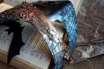 Для маски использовала те же приёмы и маску-паутину.Тут всё получилось довольно сдержанно и вполне может использоваться как новогодний реквизит. К сожалению, я не успела полностью реализовать задумку и это, скажем, light-версия:) Но от этого нравится она мне не меньше...